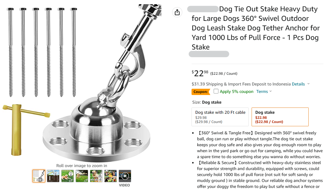 Yifeng Luo是一名广州的卖家,负责Dog Tie Out Stake拴狗桩的制作和销售。该拴狗桩的旋转底座和螺栓锚由重型防锈钢制成,具有优越的强度和耐久性,同时设计有360度旋转自由球,防止栓狗带打结。